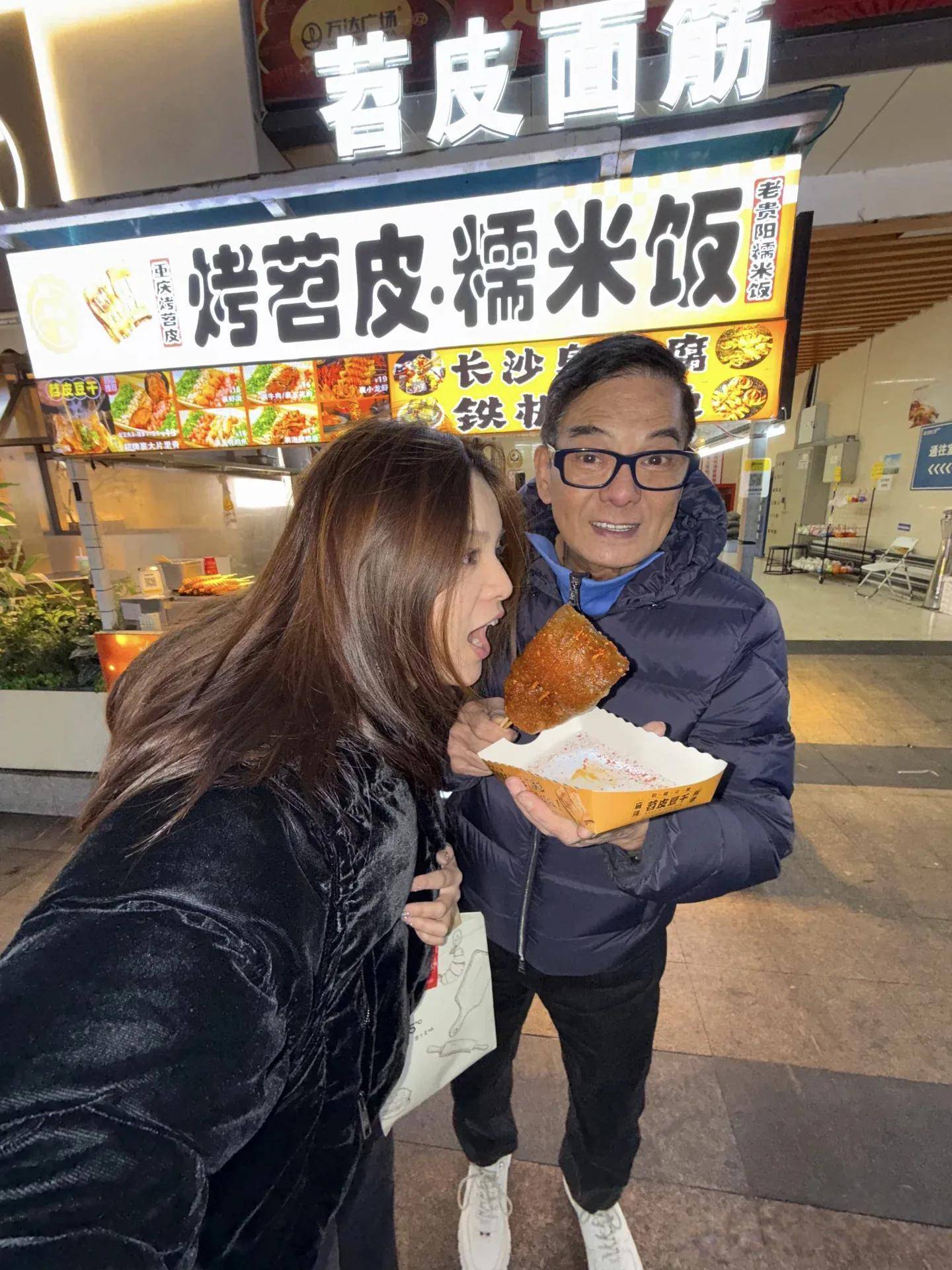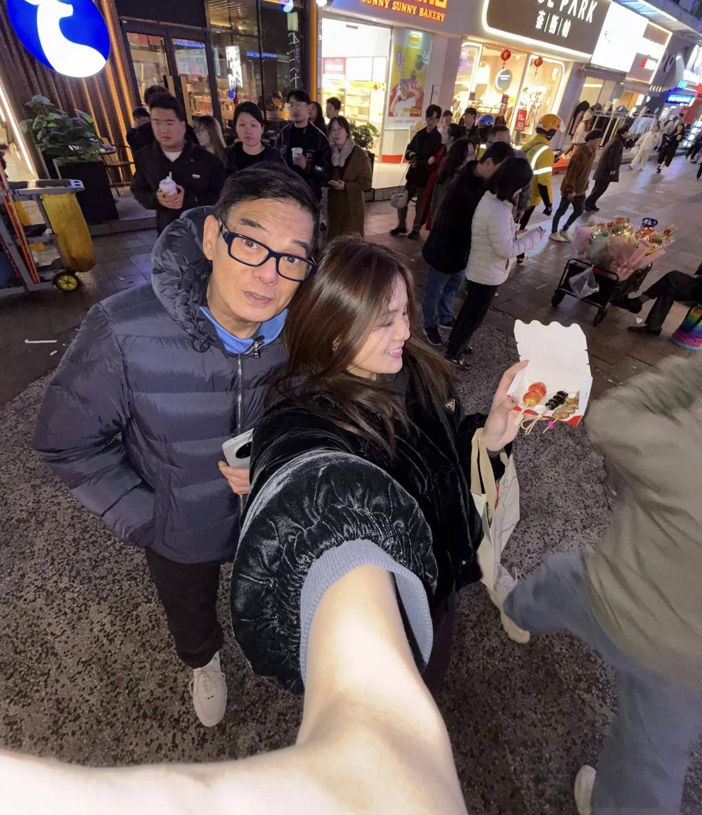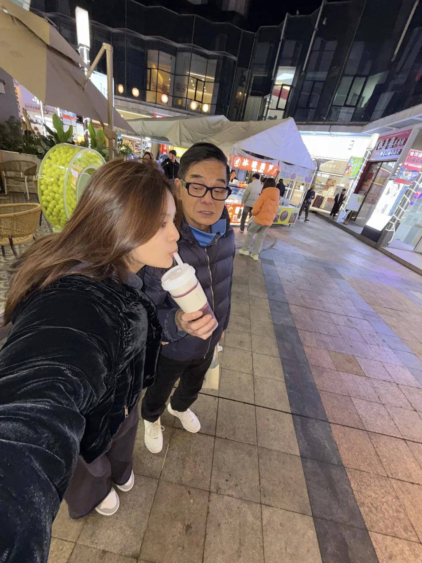 父女俩的年龄足足差了近48岁,但完全没有代沟,父女俩一起逛夜市,吃了冰糖葫芦、烤苕皮,还喝了奶茶,开心拍认证照,玩得非常开心!